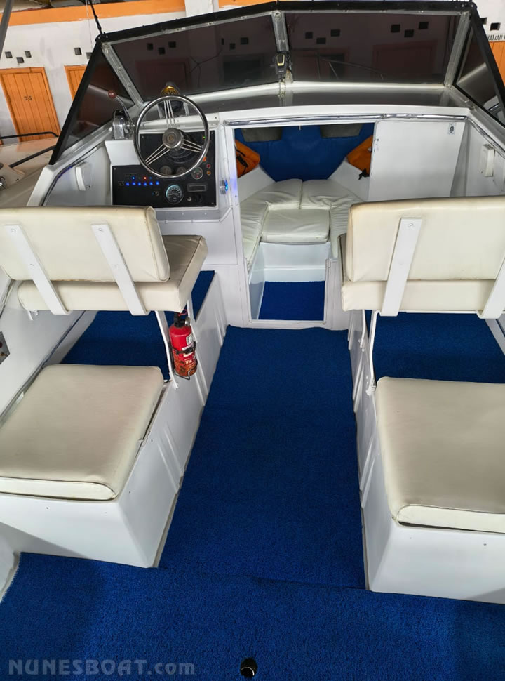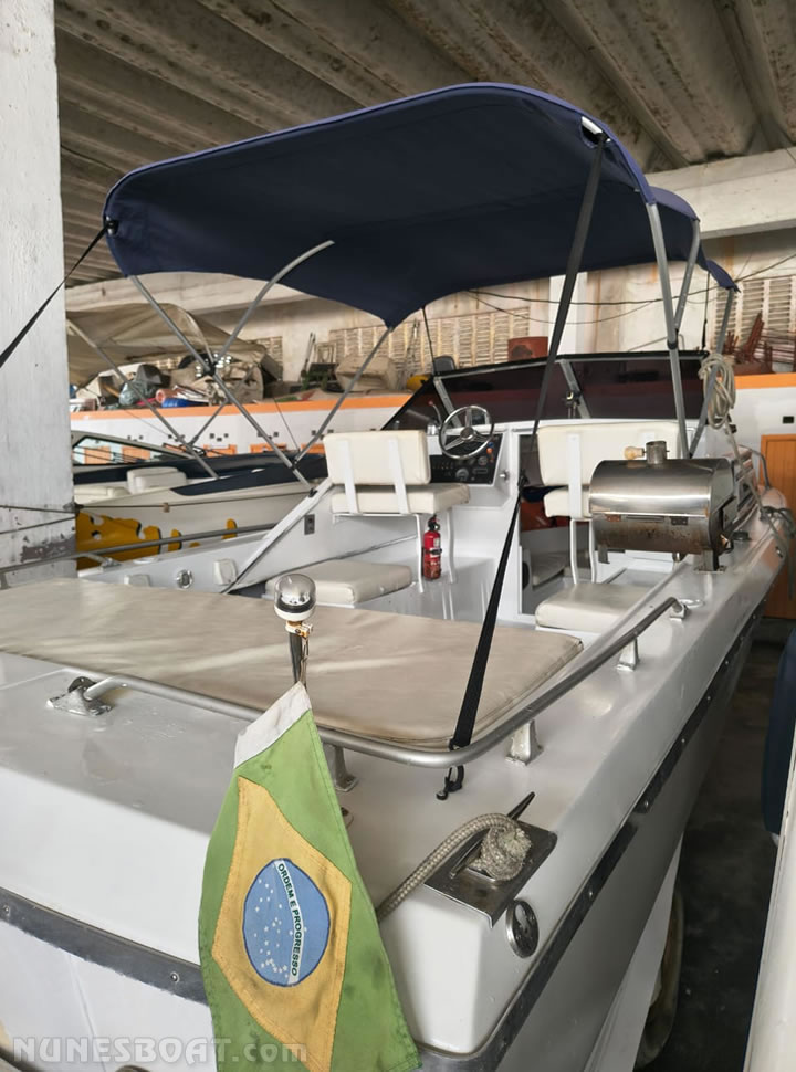 chuveiro de popa, (8) coletes, (2) defensas, direção comum,
