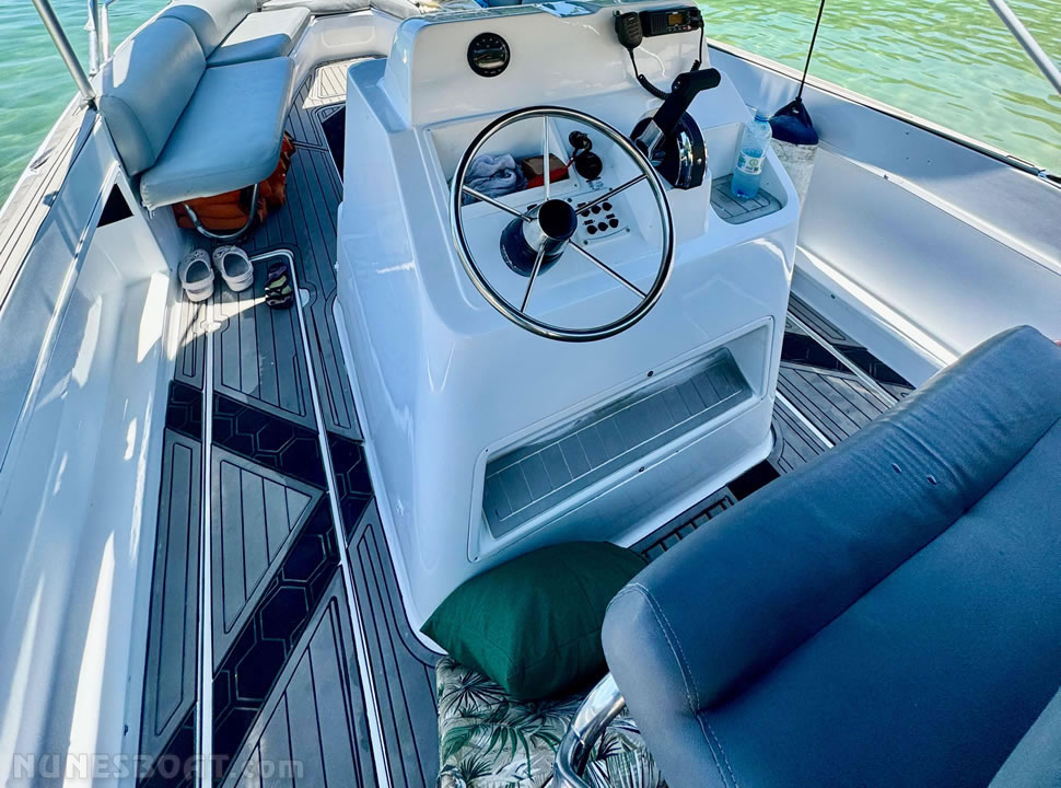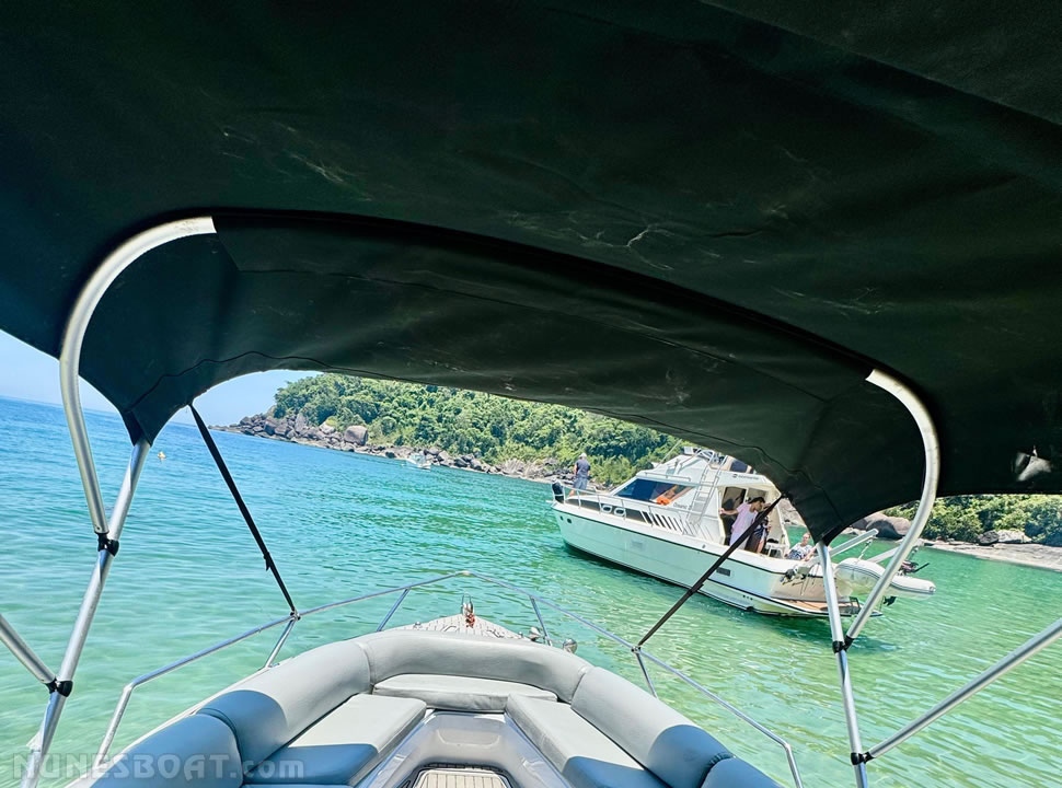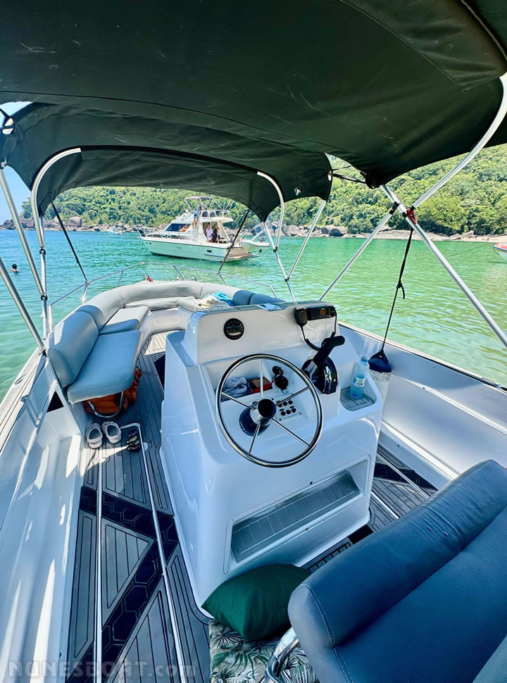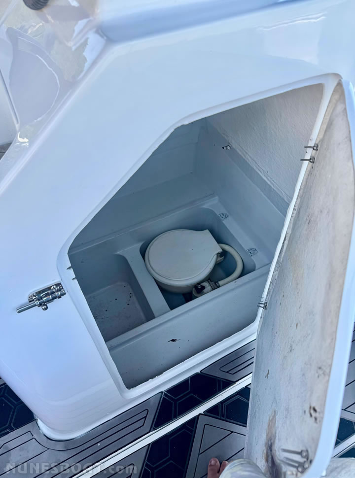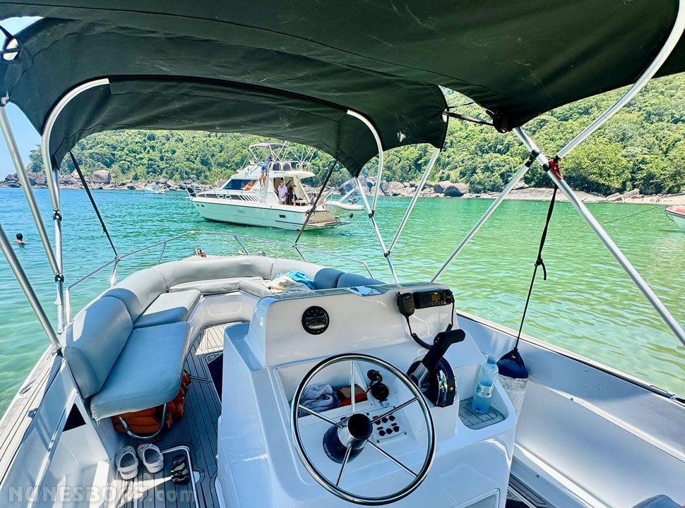 defensas, geleira, rádio vhf, sanitário elétrico, som, teca