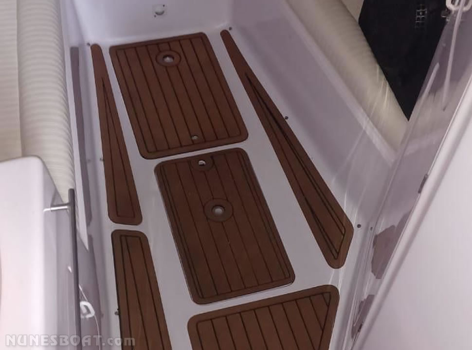 de água doce, (2) bombas de porão, bússola, capota, carreta