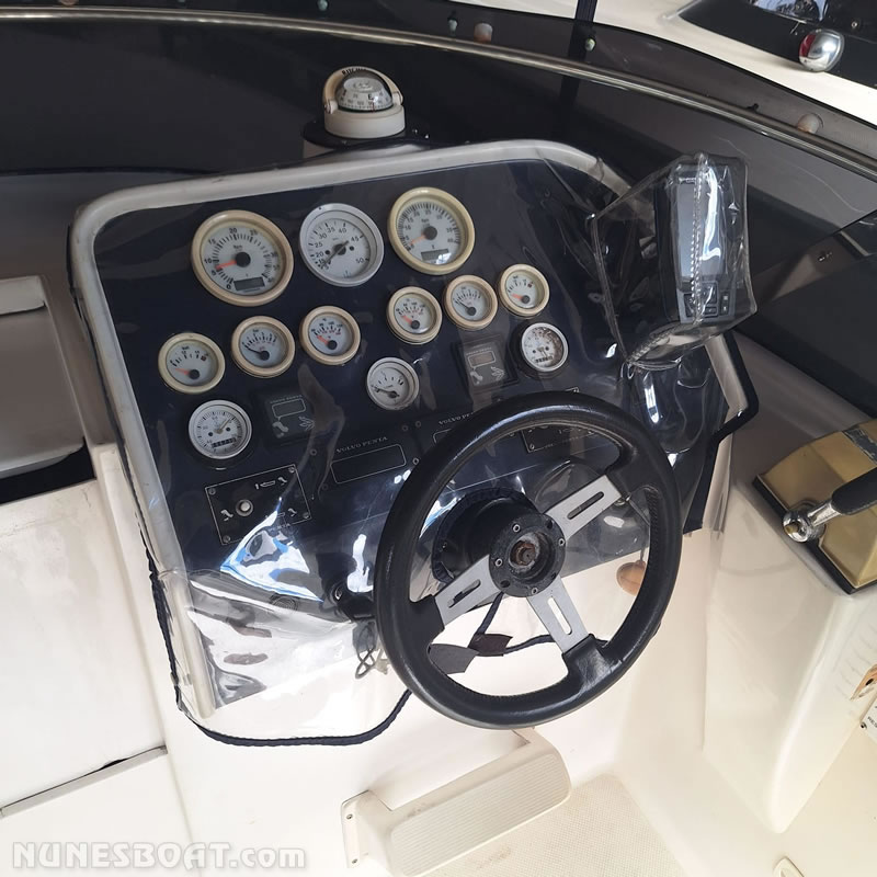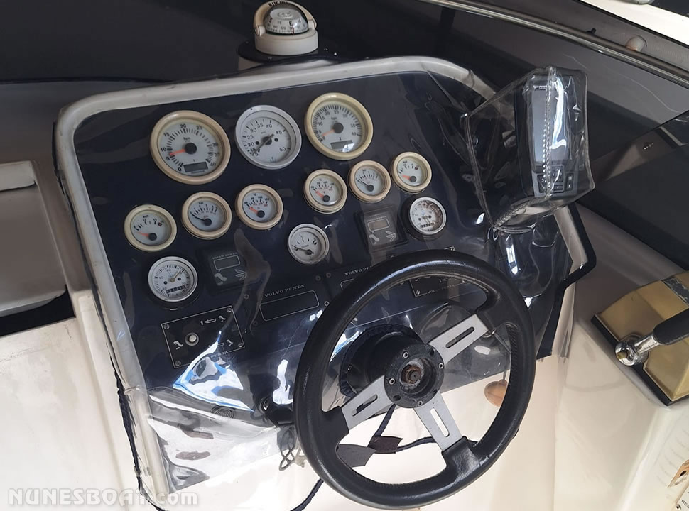 de água doce, (2) bombas de porão, bússola, capota, carregador