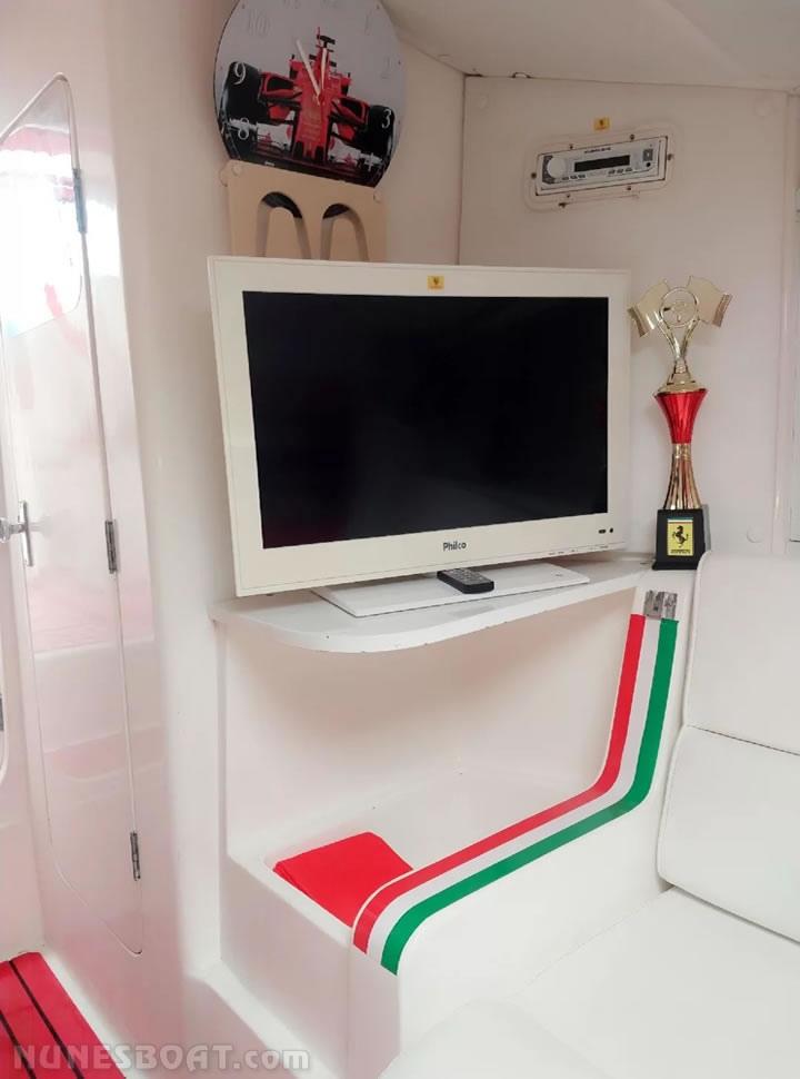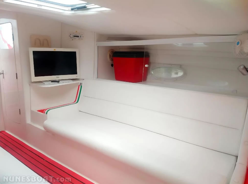 churrasqueira, chuveiro de popa, (16) coletes, (8) defensas,