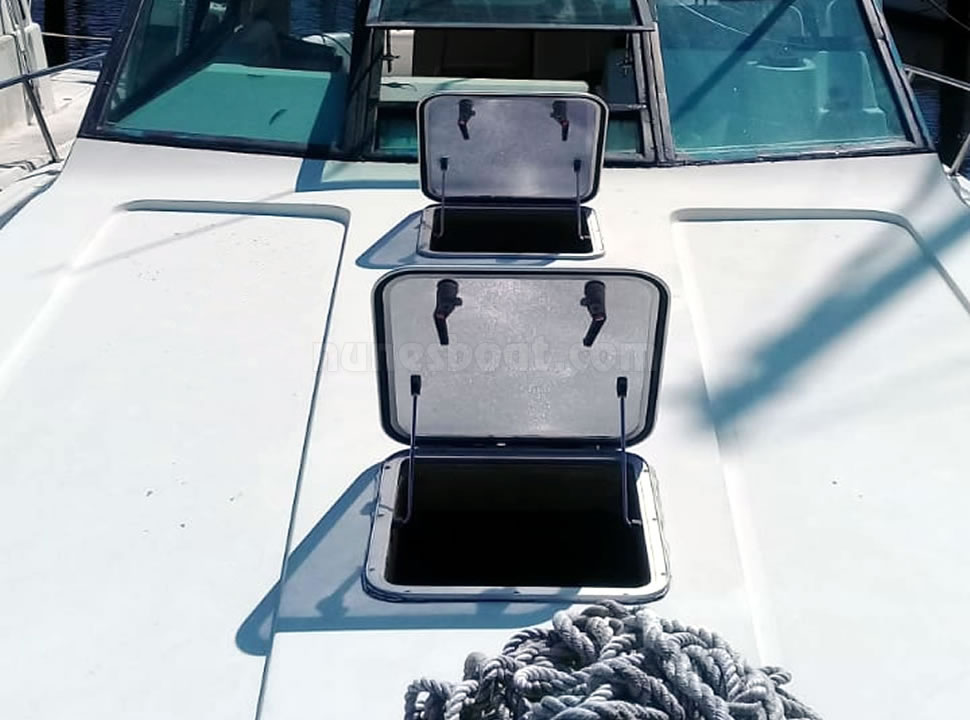 ancora, antena de vhf, (3) ar, (5) baterias, bomba de água,